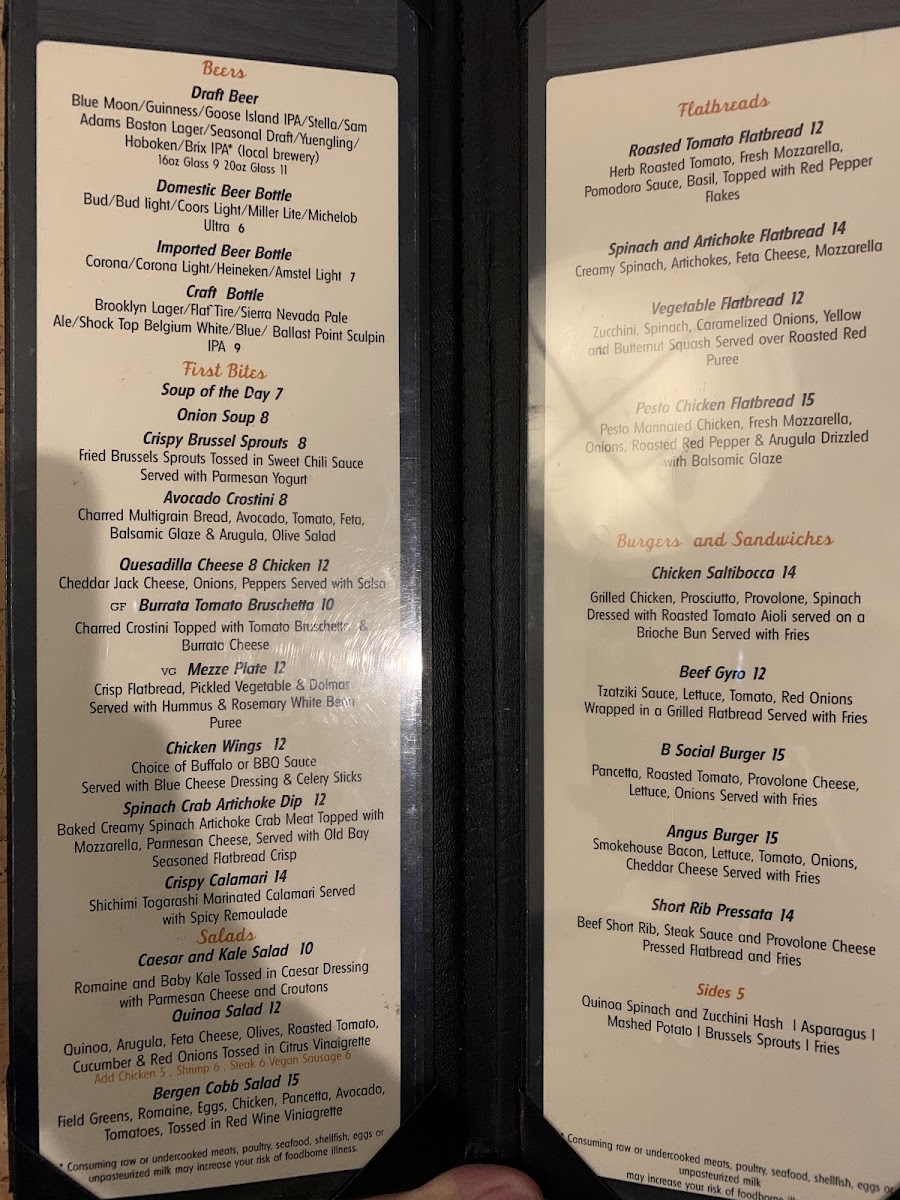 If you’re ready to dive into flavors that mix comfort with creativity, the Bergen Social Menu is exactly where you want to start. From the first bite, you’ll notice the playful twists on classic favorites, whether it’s a perfectly crispy appetizer or a hearty main that hits just the right balance between bold and familiar. What’s cool is how the menu manages to offer something for every mood-lighter bites for a quick snack, shareable plates for catching up with friends, and indulgent entrees when you’re craving a little extra. The drinks lineup deserves a nod too, pairing effortlessly with everything from spicy bites to savory mains, making it easy to find a combo that clicks. Moving through the menu, you’ll spot thoughtful details in both flavor and presentation, showing that each dish isn’t just thrown together-it’s crafted to keep you coming back for more. Between the variety of options and the approachable creativity, it’s the kind of menu that encourages tasting a little of everything, swapping bites, and discovering new favorites with every visit.